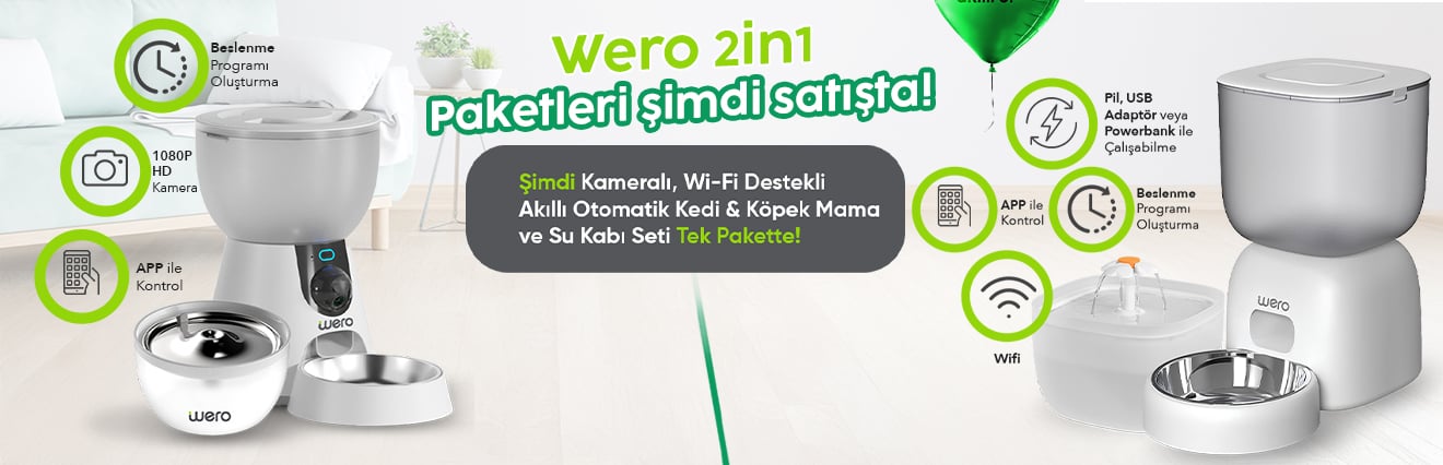 Wero, evcil dostlarınız için özel olarak tasarlanmış Akıllı Kedi-Köpek Su Kabı ve Otomatik Besleyici ile onların sağlığını da düşünür. Su kabındaki özel filtreler, evcil hayvanınızın her zaman taze su içmesini sağlarken Otomatik Besleyici ise onların yiyecek ve içecek ihtiyaçlarını otomatik olarak karşılar. Bu sayede evinizdeki dostlarınızın sağlığı ve mutluluğu için en iyi koşulları sağlamış olursunuz.